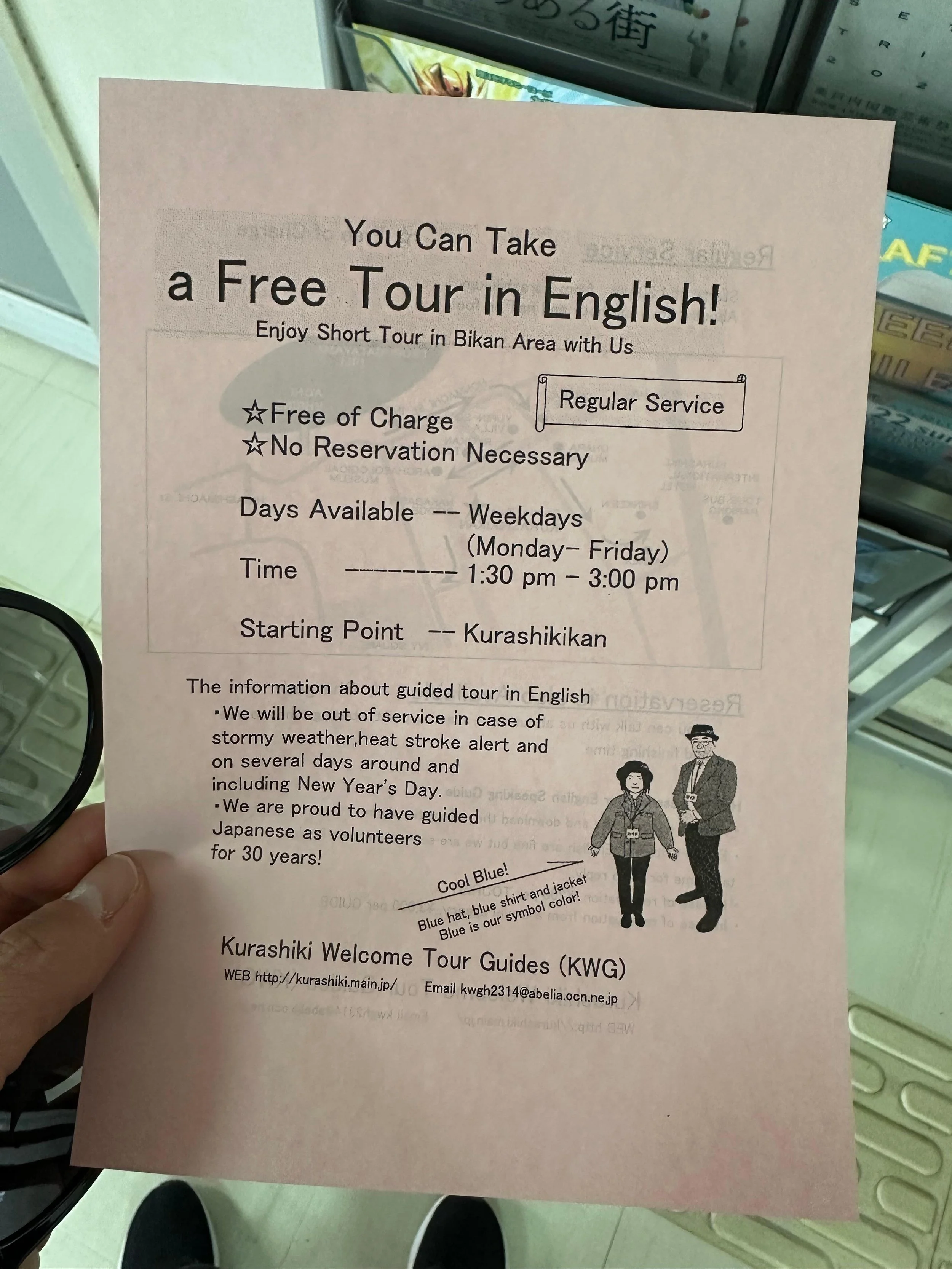 Darmowa wycieczka — start: Kurashiki-kan Info Center, godz. 13:30 (dni powszednie).