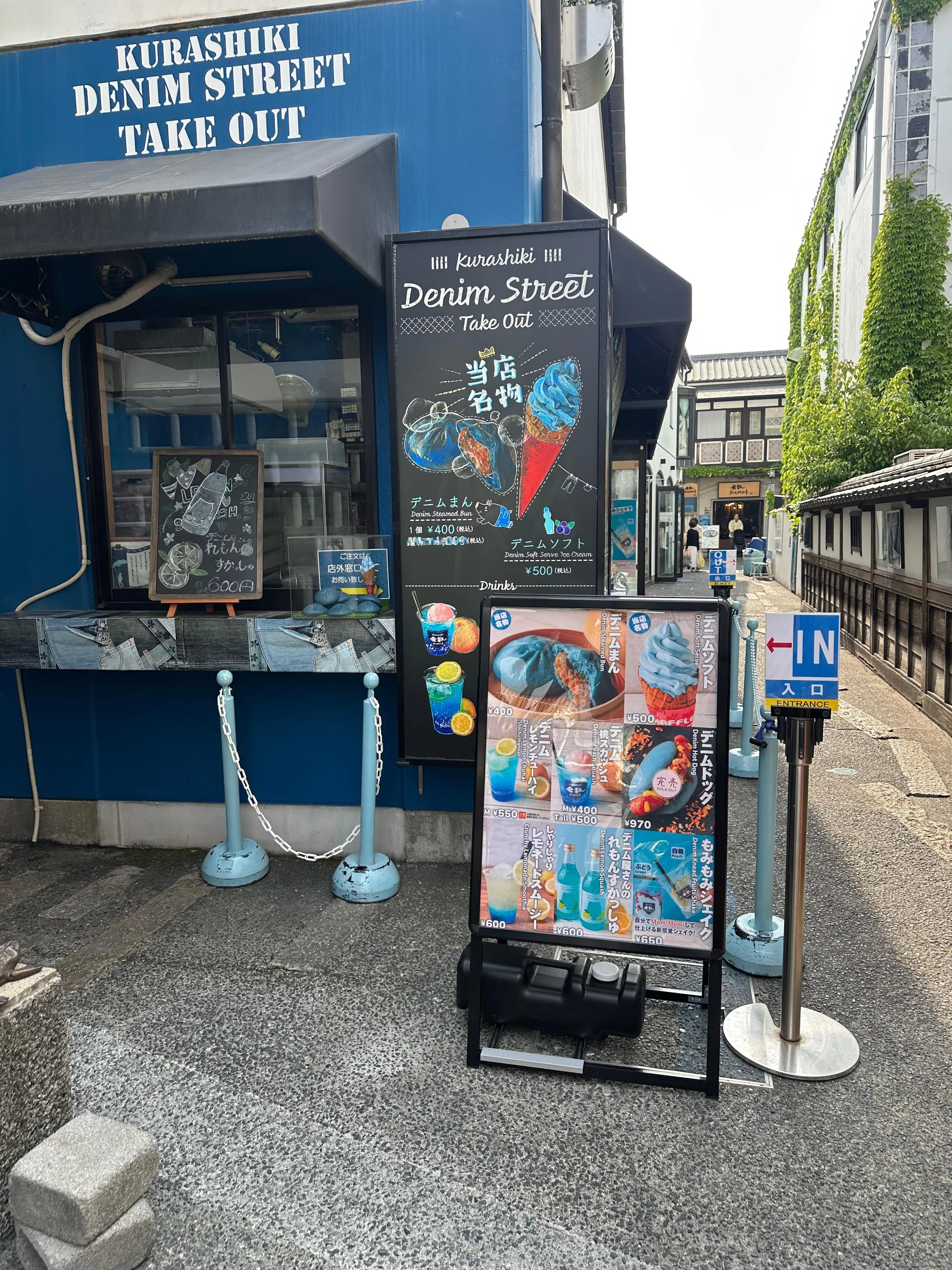 Kurashiki było też kolebką japońskiego denimu. Dzielnica Kojima, stolica japońskich jeansów, wypełniona jest warsztatami i farbiarniami stosującymi tradycyjne techniki indygo. Na Denim Street znajdziesz nawet burgery, hot dogi i lody w kolorze dżinsu — żartobliwy ukłon w stronę indygowego dziedzictwa.
