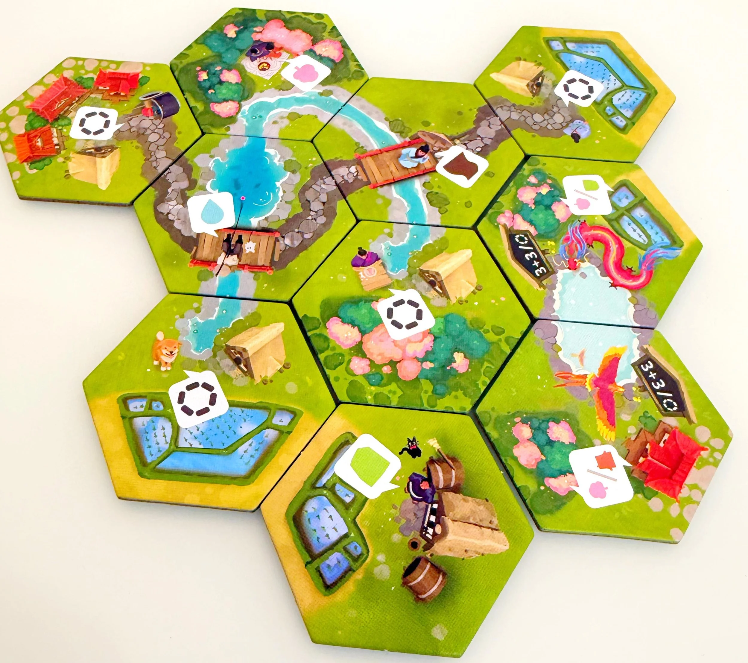 I especially love playing solo — on heavy post-travel or post-work evenings when I feel like I’ve got “no mana left” to read or even listen to an audiobook. Then I just build, one tile at a time, and it melts the tension away. Creating a Japanese landscape by myself feels like crafting something special, something truly mine. And uncovering hidden tiles is a bonus treat — especially when the puppy suddenly appears! 🐶