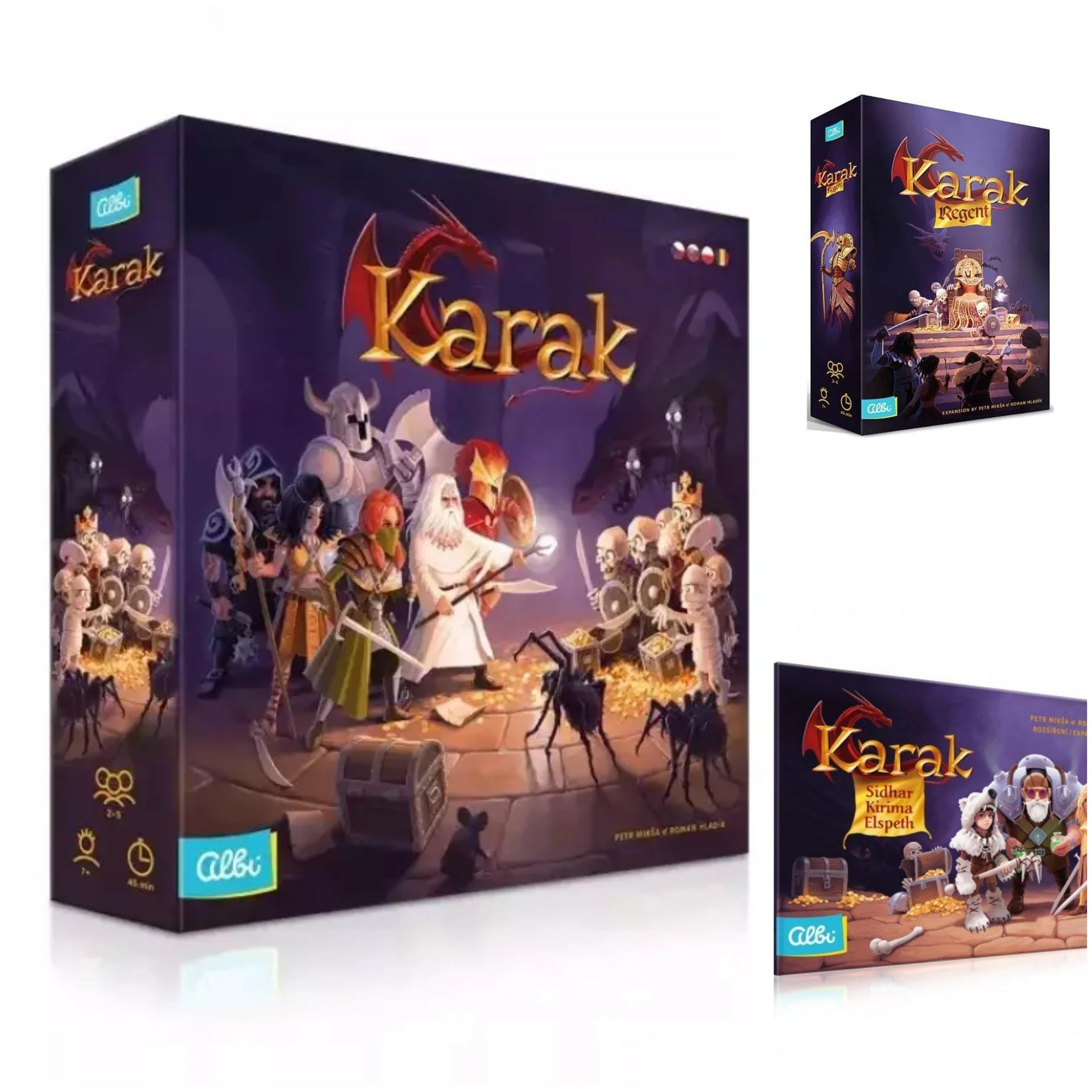 “Karak” is an exciting adventure board game with RPG elements, where each player leads one of six heroes through the labyrinth beneath the castle of the same name. Tile by tile, you reveal the dungeon, encounter monsters to fight, gather equipment and spells, and, most importantly, discover treasure chests filled with precious loot.