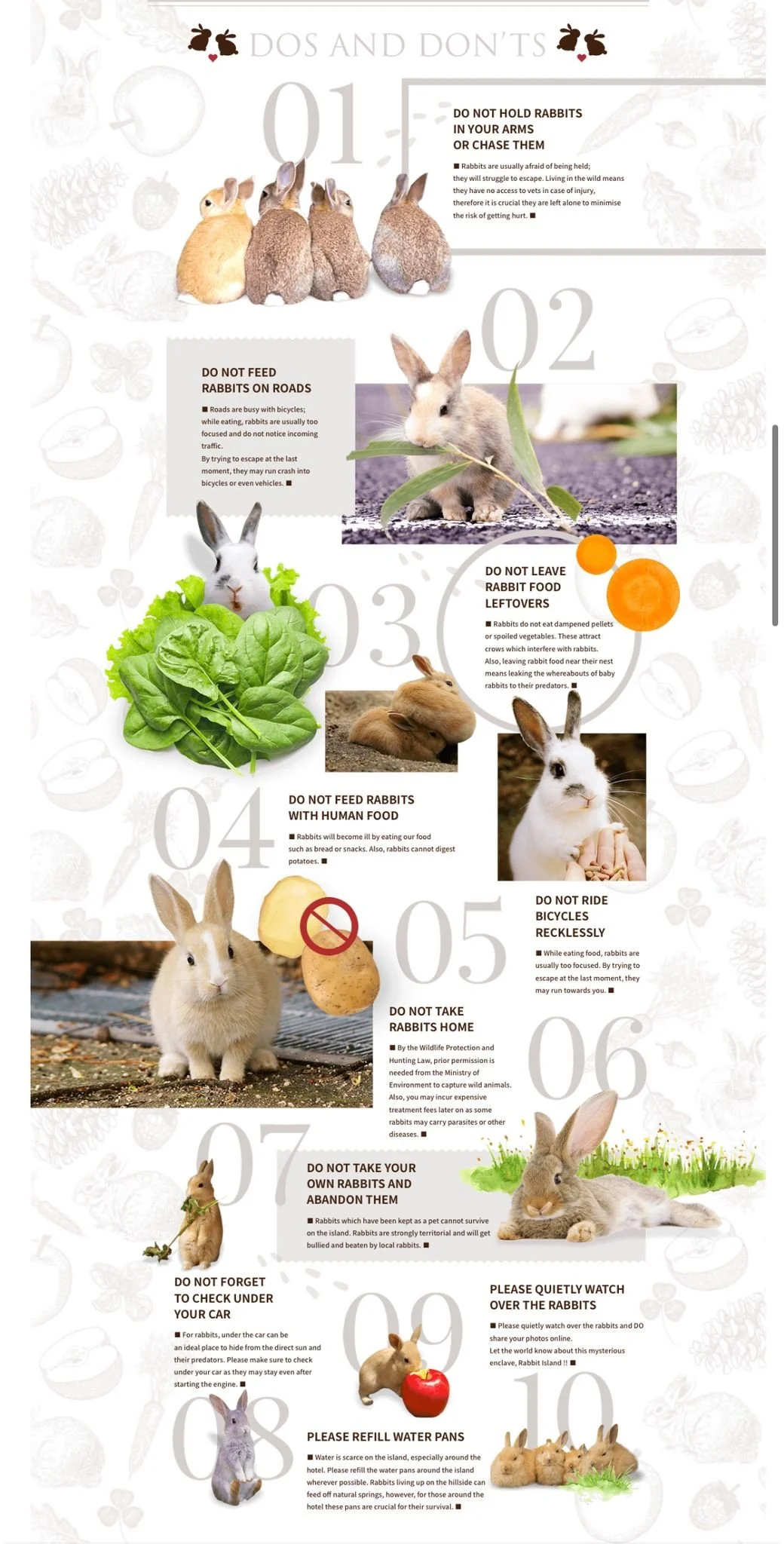 Instead, the current population began in the early 1970s, when a small group of rabbits — most accounts say eight — were released on the island by local schoolchildren and resort staff. With no predators, no hunting, and a mild climate, the population exploded. Today, there are hundreds of them, hopping freely through forests, fields, and even across the hotel lawn.